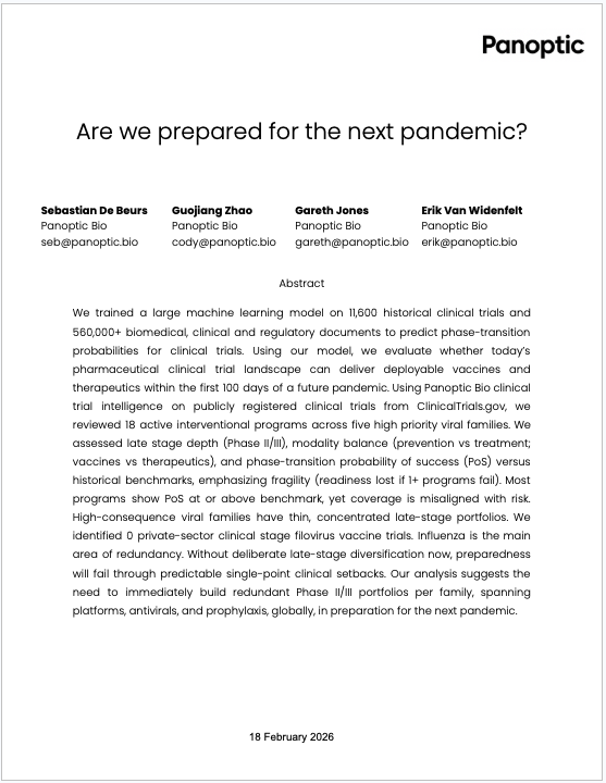 Pandemic preparedness is undermined by fragile, thin late-stage pipelines in high-risk viral families. Using a machine learning model trained on 11,600 trials and 560,000+ documents, we predict phase-transition success to identify clinical vulnerabilities before failure occurs. Our analysis shows misaligned portfolios and dangerous gaps. Proactive clinical trial intelligence is essential to forecast risk, guide diversification, and ensure deployable vaccines and therapeutics within 100 days of the next outbreak.